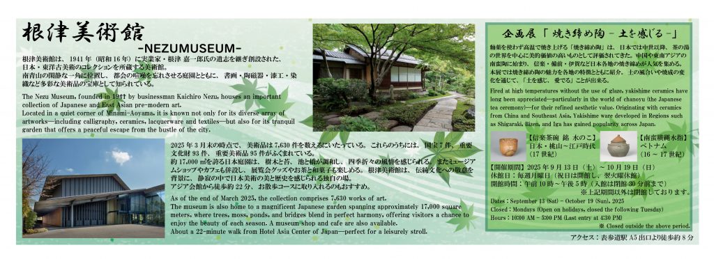 Located in a quiet corner of Minami-Aoyama, you can spend a relaxing time appreciating the gardens and diverse artworks, forgetting the hustle and bustle of the city.