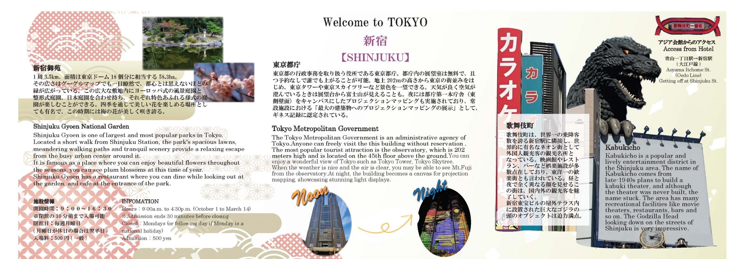 You can experience the unique charm of Shinjuku, from the tranquil nature of Shinjuku Gyoen