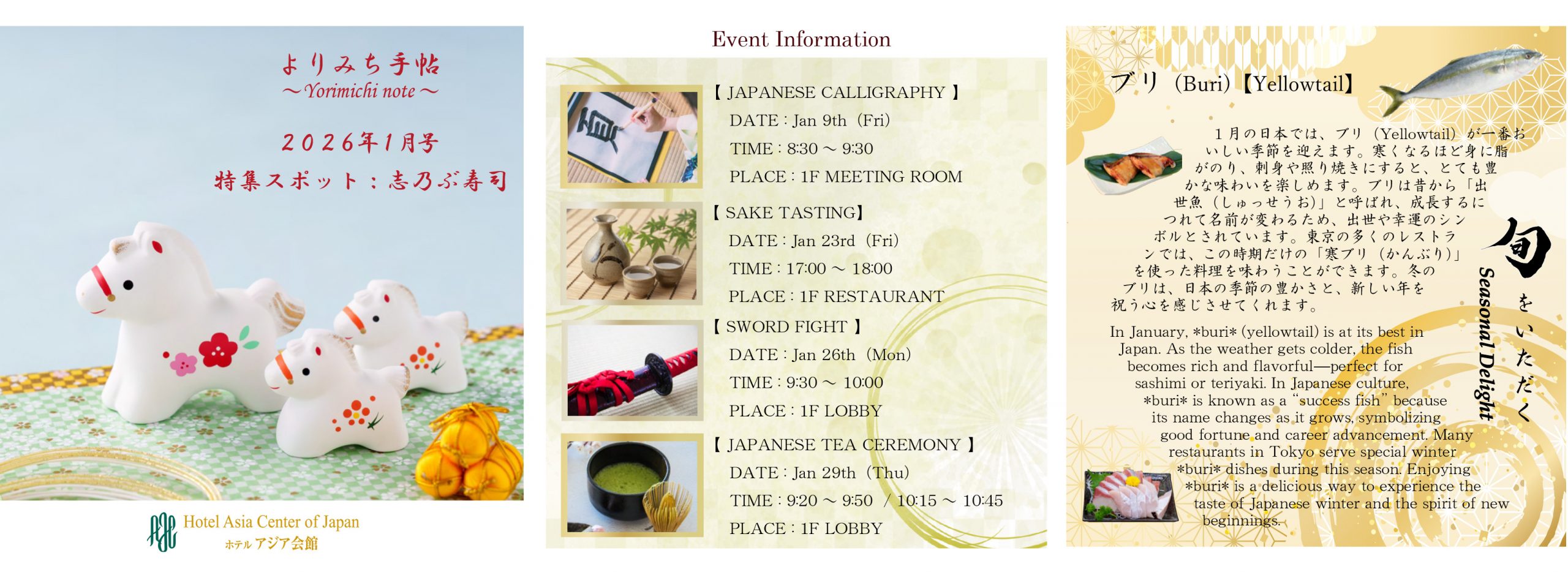 The seasonal ingredient featured today is buri (Yellowtail).